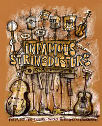 Hand screen printed fine art poster I had the pleasure of designing and printing for The Infamous Stringdusters for last nights show at The historic Vic Theatre in Chicago. Artist Edition of only 30 copies, signed and numbered (A.E. 1/30 etc). 18 x 24 inches on Construction Gold paper by French Paper Company.