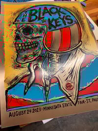 Brushed metallic Gold edition of my recent poster for the Black Keys appearance at the MN State Fair. Edition size is 10, prints are 18 x 24 inches.