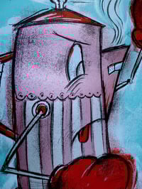 An ode to the battle of Coffee Drinkers vs the Morning, "The Champ" is modeled after a really rad coffee pot of my Grandmothers that I have here at home (percolator), imagined through the prism of Rocky Marciano.