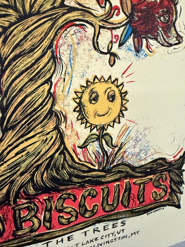 Artists Edition of only 10 18 x 24 signed and numbered posters for The Disco Biscuits “Between The Trees” shows in Montana at Livingston Park.