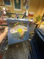 The image was inspired by the John Craig back cover collage artwork from the 1995 release. Using this as my source to filter through my brain and the magic of scratchboard for the initial black and white image , I hand painted color separations for each screenprinted layer to give the final outcome an idiosyncratic and iconic presence. I’m very proud of how this turned out and happy it can stand on its own as well as be an homage to the original LP vibe. It’s been a great experience to produce this.